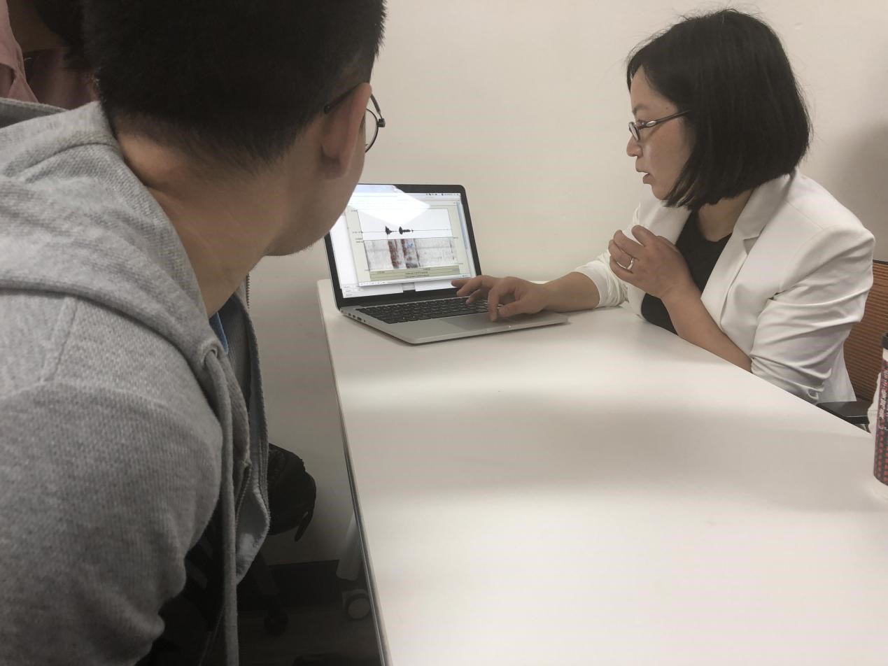 第一天的课程向雪花副教授首先通过简单的性格问题与同学们进行互动,并且很快地对同学们有了初步了解。接下来的课程学习,向老师通过之前的课程安排,每人负责一篇文献。每天向教授详细为员工介绍了与资料相关的语言学在相关领域的理论成果、研究方法、研究软件,并近距离介绍软件操作流程,同学们受益匪浅。每节课最后半个小时便是同学们进行课程展示,向雪花副教授对课程展示进行点评。每天二年级和三年级研究生们也会同向教授进行提问,并请教相关的学术研究问题。