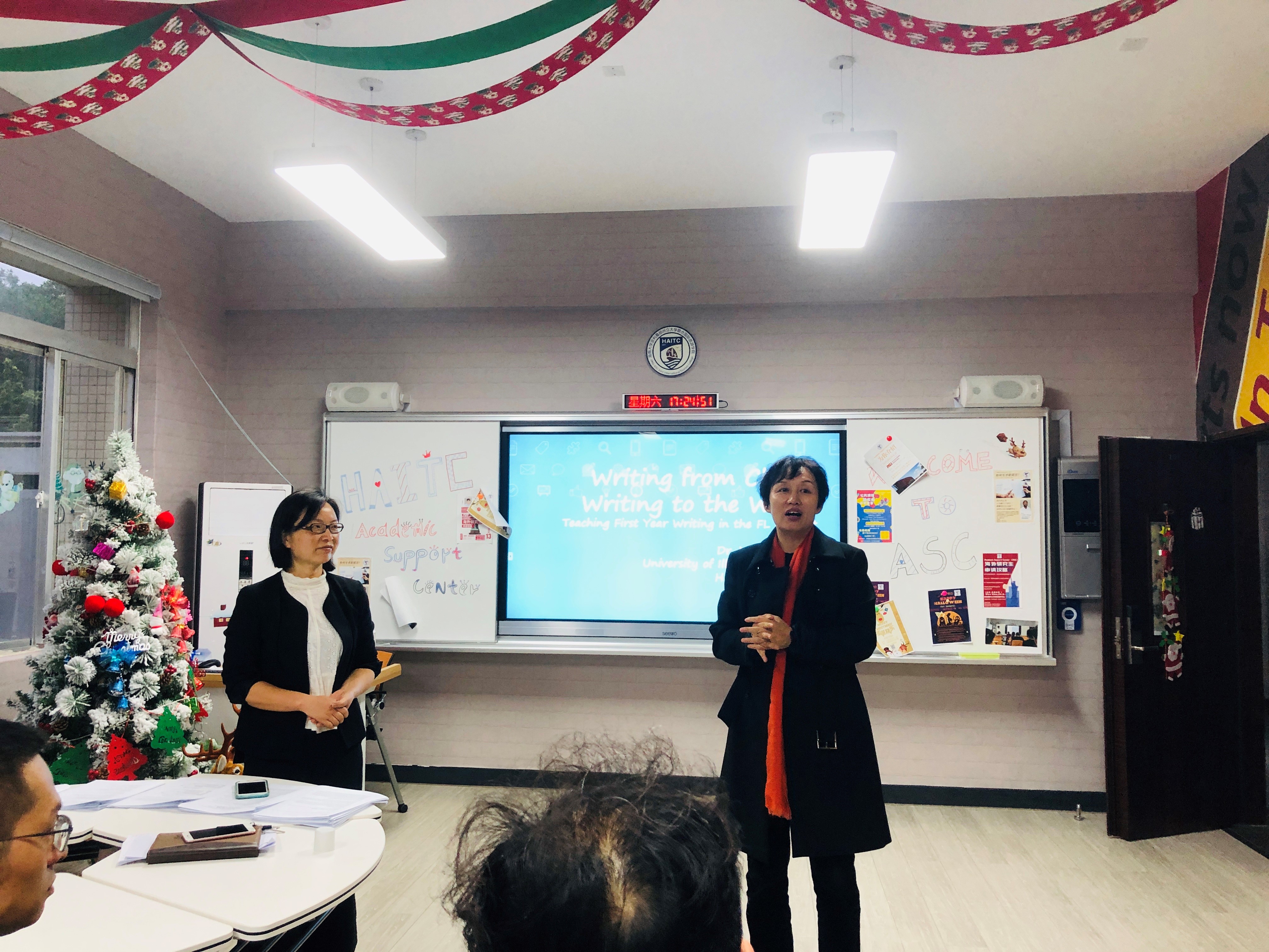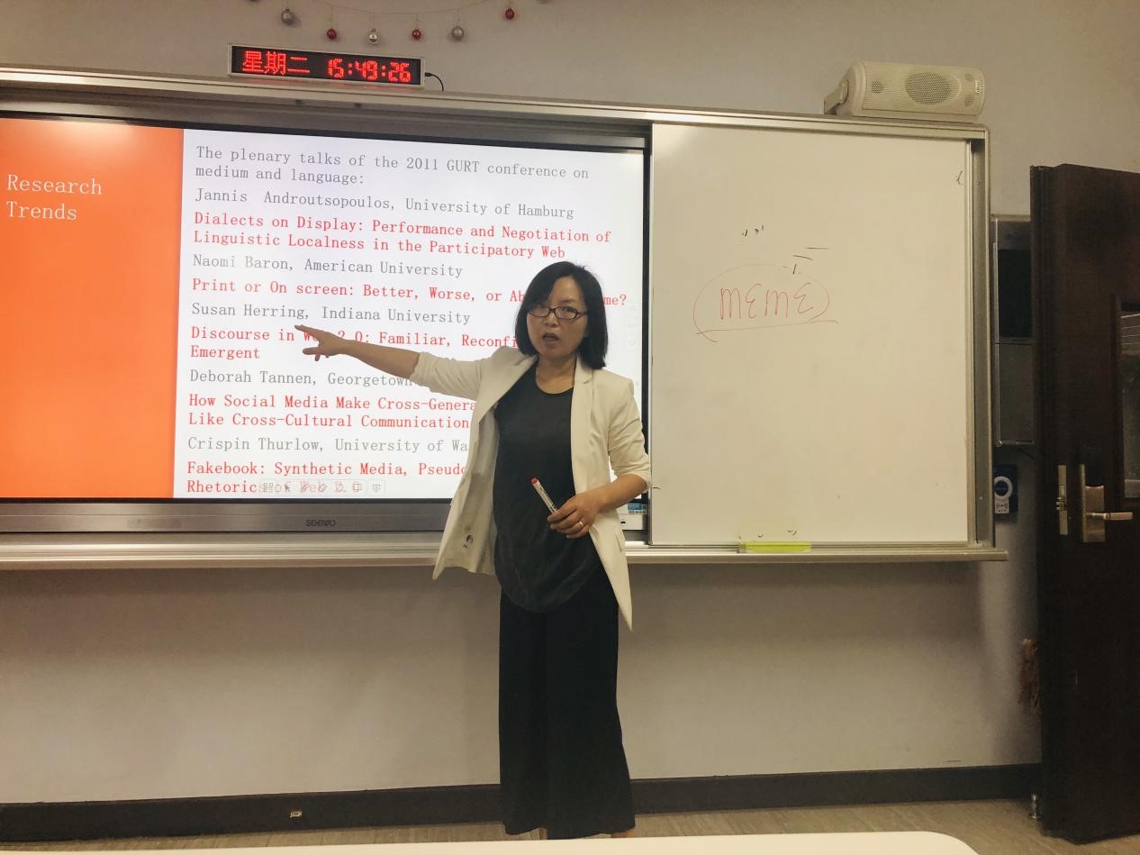 受bw必威西汉姆联官方网站国际交流与合作处、bw必威西汉姆联官方网站旅游公司、国际旅游公司邀请,伊利诺伊大学向雪花副教授于12月22日莅临公司,在田家炳楼202室为旅游公司外国语言学及应用语言学、外国语公司外国语言文学硕士研究生讲授《应用语言学国外前沿进展》课程。该课程为期8天(2018年12月22日-29日),旅游公司、国际旅游公司部分老师也到场听课。