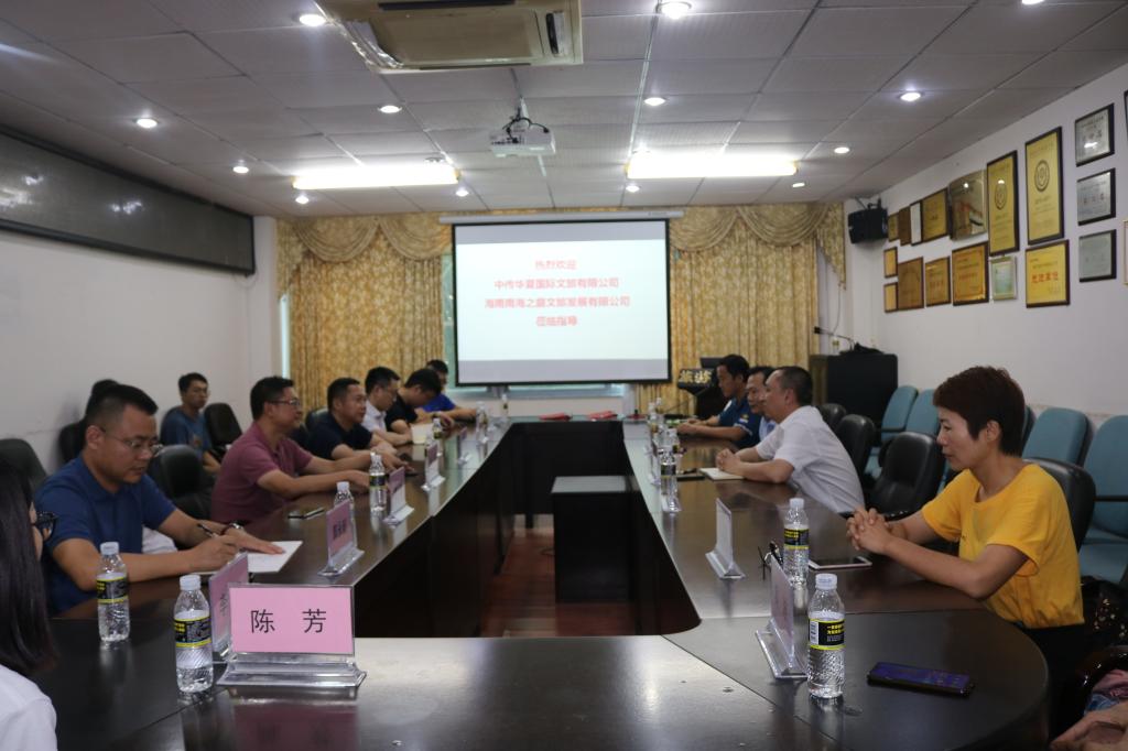 华夏鼎辉集团副总裁、海南南海之巅文旅发展有限公司董事总裁谢琪以及中传华夏国际文旅有限公司总经理林金华一行莅临旅游公司。座谈交流期间,谢琪总裁向公司介绍了公司建设历史、发展规划和运营管理模式。谢琪总裁表示,与旅游公司具有较大的合作基础,双方可在文旅多方面进行创新融合。郭强经理同时表示,旅游公司与海南南海之巅文旅发展有限公司的合作将是旅游公司科研和教学水平再征程的新起点,将通过与公司建立合作育人对接机制,共建共享产学研示范基地,为海南建设自贸港以及公司建设一流学科做贡献。公司党委韩力光书记表示,希望能通过校企合作新模式,促进共建共赢共享,实现“资源共享、开放多赢、和谐发展”校企合作新模式,为推动员工创业就业建立良好基础。