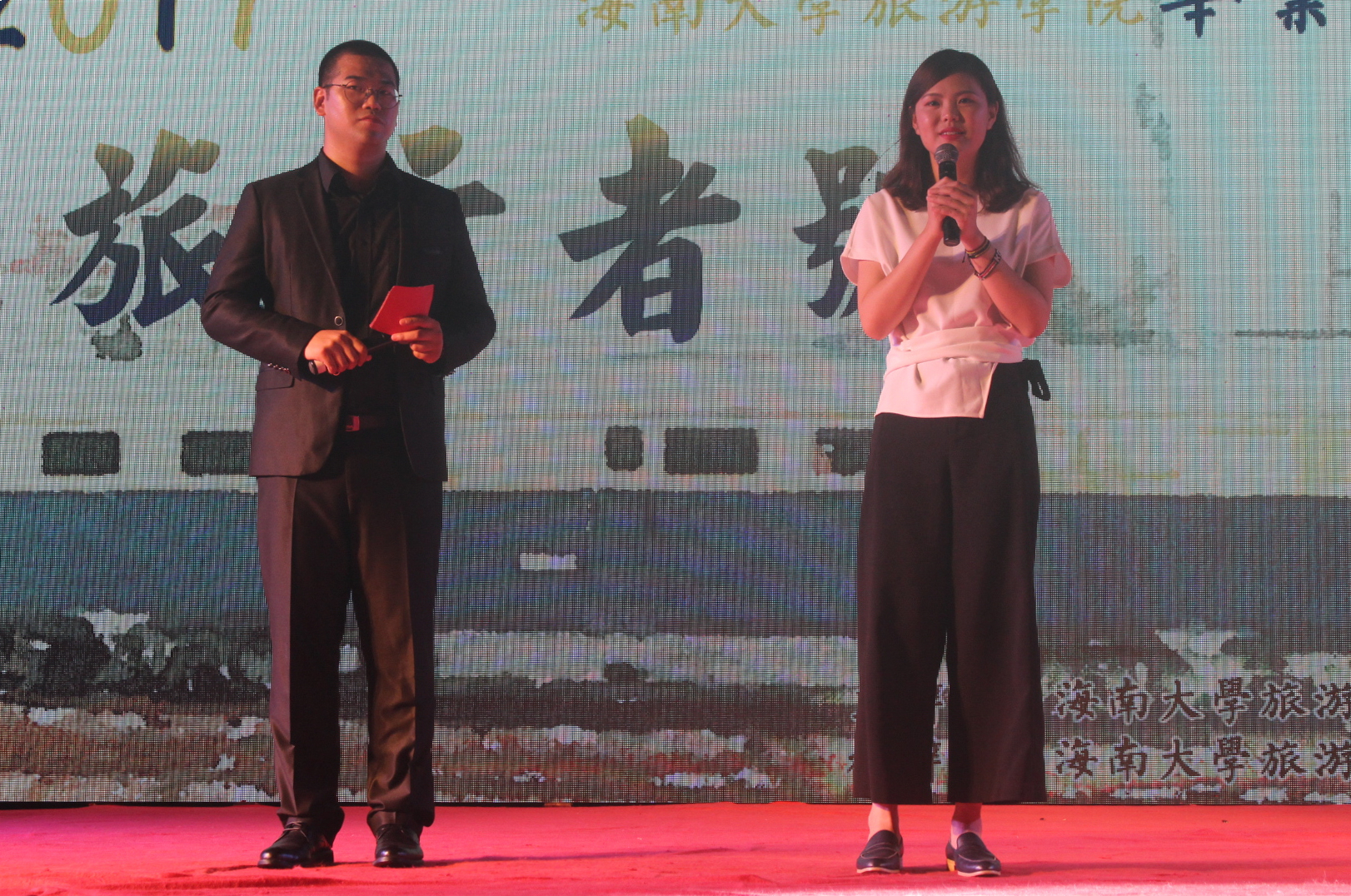 晚会上不仅有精彩的节目,还有优秀毕业生分享宝贵经验。2011级旅游管理(文科实验班)的优秀毕业生张楠青向即将毕业的2013级全体员工分享她学习和生活上的经历经验。在谈及她去非洲支教的经历时,她说道:“不要将别人的帮助当成是理所应当的,要时常感恩。”她还提出两点期望,首先,学习是永无止境的,我们应该不断扩充自己;其次,要不忘初心,“不要忘记自己曾经是什么样的小孩,也不要忘记自己曾经想成为什么样的大人”。