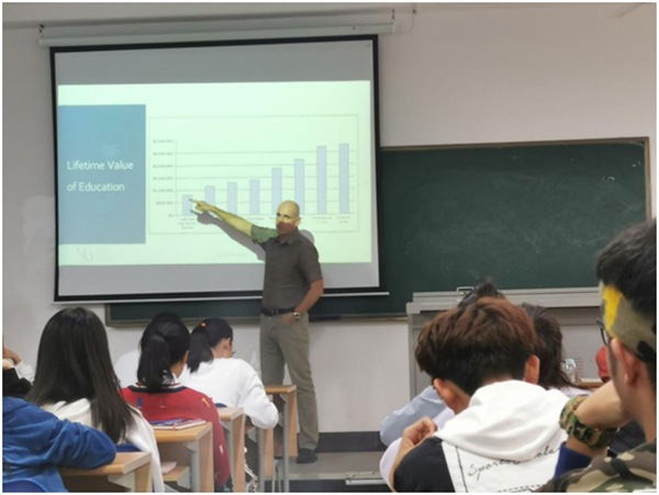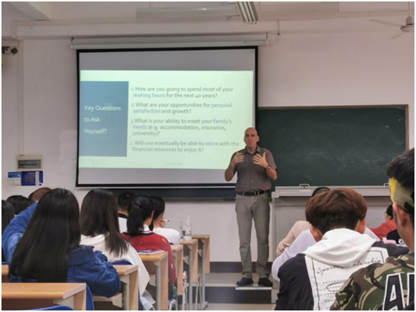 2019年12月13日下午14:40,都柏林理工大学酒店管理公司副经理Ralf Burbach在4-204为大一员工开展主题为“Career Planning”的讲座。Ralf副经理主要围绕当今社会背景、关键问题、学业及未来职业选择的重要性、学业及未来职业的多种选择、老员工职场自我意识构建和大四学年规划等方面进行耐心全面地讲解,让员工提前做好学业和职业规划。本次讲座有效地解决了员工目前存在的疑惑,为员工未来学业发展和就业选择提供了切实有效的建议,使员工受益匪浅。讲座持续一个半小时,在热烈的氛围中圆满结束。