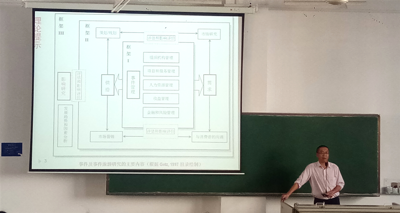 戴光全教授先从西方及我国事件旅游研究概述引入,介绍了Conference and Exhibition、Event、Tourism基本概念及理论、事件旅游研究的内容和研究方法。授课中戴光全教授通过列举2012——2019年,世界各国在政治、经贸、文化、科技、艺术、体育等多个方面,20多个不同类型的活动案例,向同学们全方位多角度的介绍展示会展节事活动。通过多个丰富生动的案例,同学们对会展节事活动有了更具体的了解。