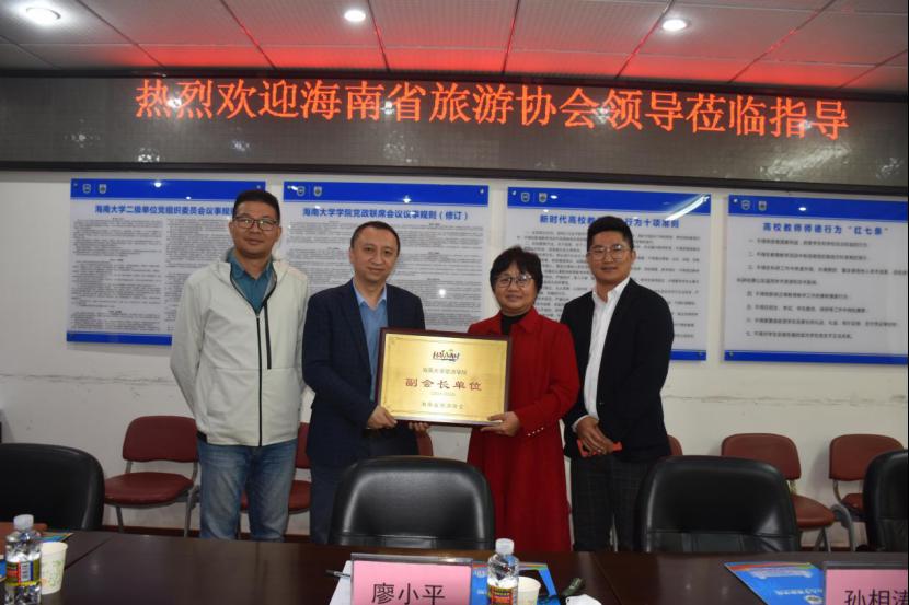 1月27日下午,海南省旅游协会秘书长廖小平一行来访bw必威西汉姆联官方网站旅游公司并授予第六届会员单位牌匾。郭强经理、谢祥项副经理、综合办周超凡主任出席会议。