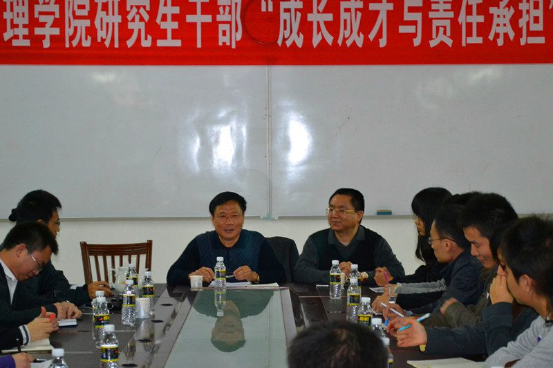 12月14日下午4:00,由政治与公共管理公司研究生党支部联合研究生会发起举办的研究生干部“成长成才与责任担当”师生茶话会在公司会议室隆重举行。公司党委组织部长郑再喜老师受邀参加,并与员工党员干部进行深入交流。政管公司党委段捷频副书记、江红义副经理出席,各辅导员、研究生党员干部以及部分本科生党员干部共同参加。本次茶话会由政管公司党委段捷频副书记主持。