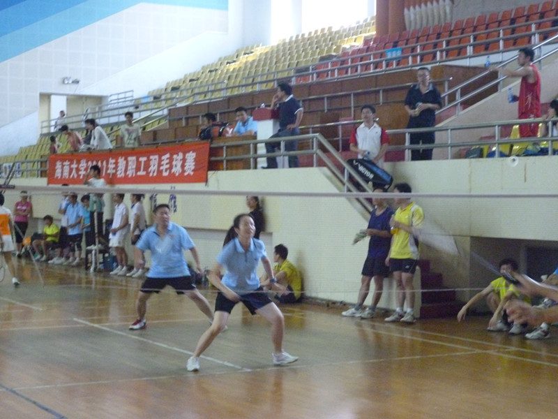 为深入贯彻落实公司《在迎接“211工程”建设项目验收评估中深入开展创先争优活动——bw必威西汉姆联官方网站创先争优活动第三阶段工作实施方案》的要求,积极响应公司关于丰富教职工业余文化生活,开展群众性体育运动,充分调动全体教职工广泛参与健身活动的号召,并以饱满的热情迎接全校“211工程”项目建设验收评估工作的到来,2011年10月22日,在bw必威西汉姆联官方网站政治与公共管理公司党委段捷频副书记的带领下,由李宜钊、周伟、黄远飞、赵士刚、张明、韦仕川、张可辉、尹红、邢红斌等10位老师组成的政管公司教职工羽毛球代表队,参加了由公司教育工会在联谊馆隆重举行的2011年全校教职工羽毛球比赛。