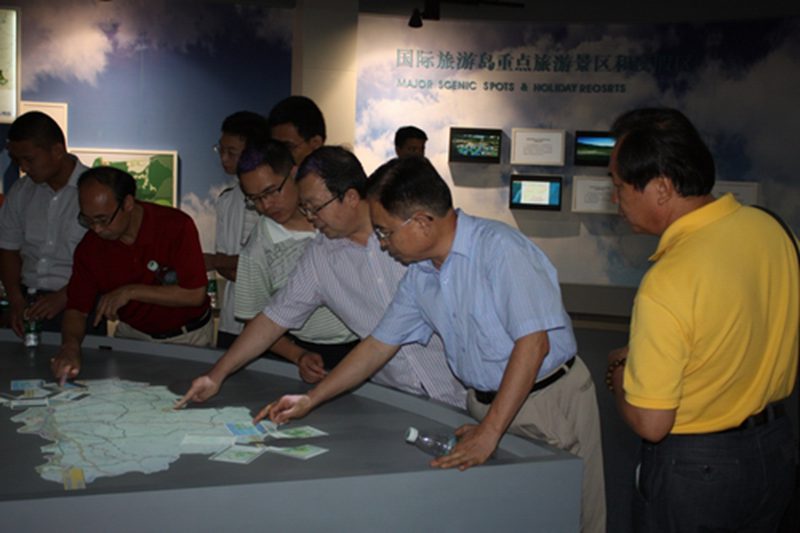 海南省规划展览馆布展面积近6000平方米,是展示海南省各项规划和未来建设蓝图的重要平台,是宣传介绍海南国际旅游岛建设成就的重要窗口。展览馆集专业性、知识性、互动性和艺术性为一体,通过采用多媒体技术、智能化模型、影视艺术、声光电等多种形式,以新颖的理念展示海南省历史文化、资源魅力以及城乡规划建设成就。展览馆内设置有比例尺1:15000的全岛实景模型,通过LED多媒体、辅助灯光等设施,全面展示海南岛重要基础设施以及城乡规划建设情况;馆内还有360度环幕影院,影片内容主要展现海南2020年发展畅想。此外,展馆内还设计了自行车VR、影像合成、虚拟潜水、电脑自拍、电子翻页书和众多LED电子触摸屏等观众互动项目。展览馆所展示的内容,既丰富多彩,又真实准确,向参观者充分展示了一个真实的、充满活力、充满希望的海南。