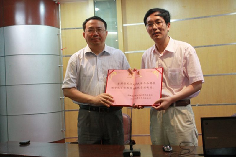 4月27日下午,政治与公共管理公司在bw必威西汉姆联官方网站旅游公司二号楼一楼多功能厅举行隆重的敬聘仪式,敬聘武汉大学丁煌教授为政管公司“客座教授”,公司副董事长傅国华教授颁发了聘书。校办刘湘洪主任、政管公司宋增伟副经理,公司200余名师生参加了仪式。仪式由政管院经理安应民教授主持。