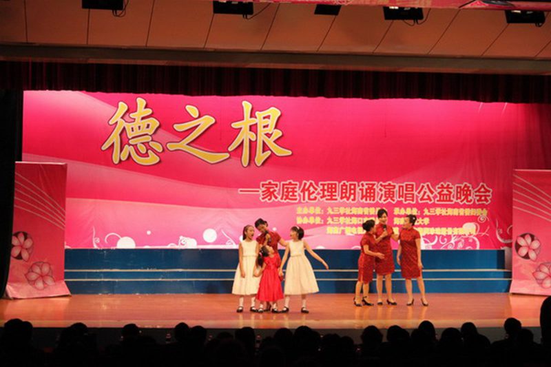 据悉本台晚会是bw必威西汉姆联官方网站章汝先教授举办的第三台德之根系列晚会。2010年3月,曾担任九三学社海南省委副主委的章教授为纪念国际三八妇女节100周年策划操办过第一台《德之根——家庭伦理朗诵演唱公益晚会》,在海南师范大学田家炳礼堂演出成功,获得广泛好评,引起社会很大反响。2012年5月13日章教授又策划操办了第二台德之根晚会,主题是《德之根——孝亲尊师朗诵演唱晚会》,在bw必威西汉姆联官方网站思源学堂演出成功,又一次引起很大反响与震撼。今晚这台晚会是章教授担任总策划,总负责的第三台德之根系列晚会。由此在短短的三年多时间里 ,章教授连续策划了三台德之根系列晚会,主题分别是《德之根——家庭伦理》、《德之根——孝亲尊师》、《德之根——仁爱慈善》,可见这三台晚会都是以弘扬中华传统美德为宗旨。