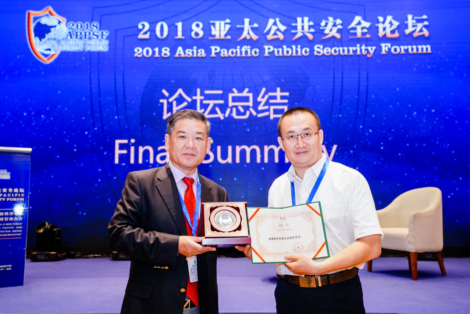 公司公共关系学系毕研韬教授应邀出席了论坛,他的发言题目是“深度融合民间资源,维护亚太公共安全”。4月17日,海南中金鹰和平发展基金会执行理事长、海南公共安全研究院经理李柏青先生向毕教授颁发了高级研究员聘书。