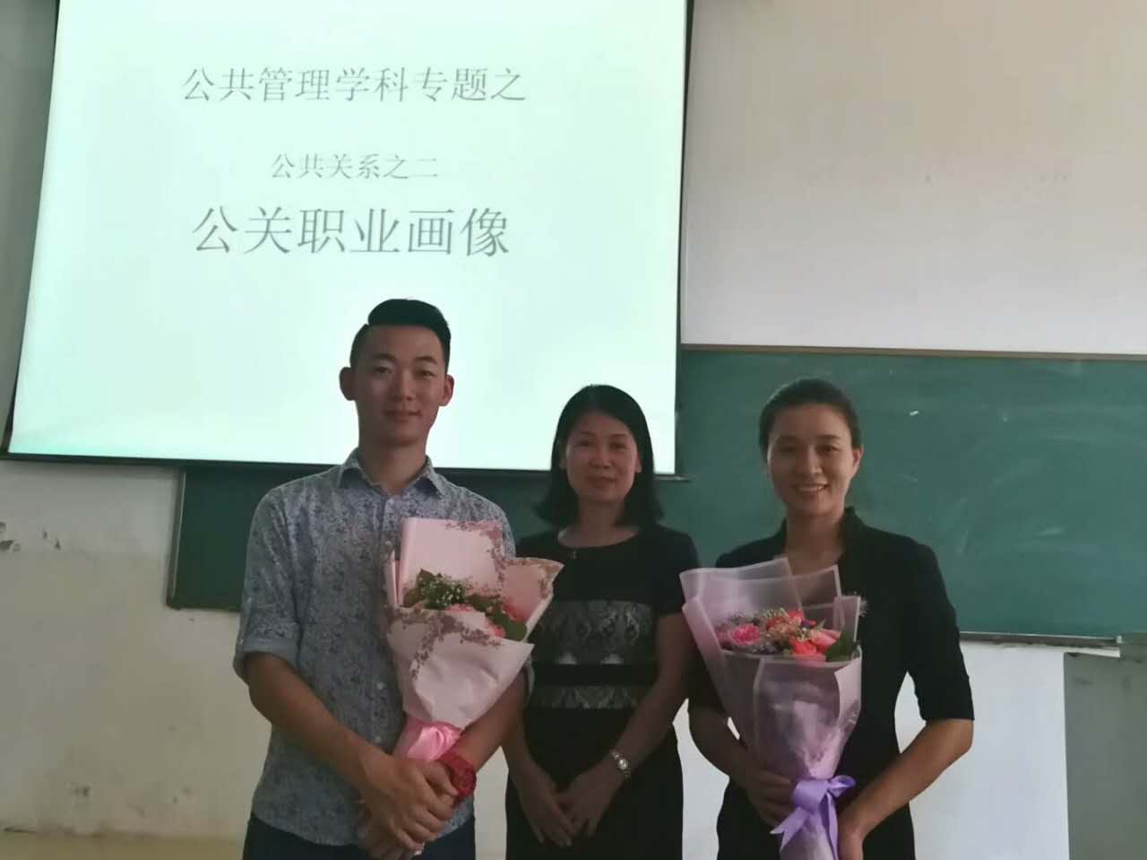 今天的是“公关职业画像”。陈老师邀请了两位已经毕业的公共关系学专业员工来与16级的同学一起分享从业经验和体会,希望通过分享,帮助2016级同学了解公共关系行业,使同学对公共关系职业有更感性的认识。本次邀请到的嘉宾有两位,分别是公司公共关系学专业2002级的毕业生,现任海南工商公司教师,还是海南星河公关有限公司总经理的郭海霞师姐;还有2010级公关专业毕业、现在蓝色光标公关公司任职的刘玉盛师兄。两位师兄师姐就自己在公关职场中所遇所知与2016级员工进行了分享,并与同学们交流了对公共关系职业的认知和理解、经历和感悟。