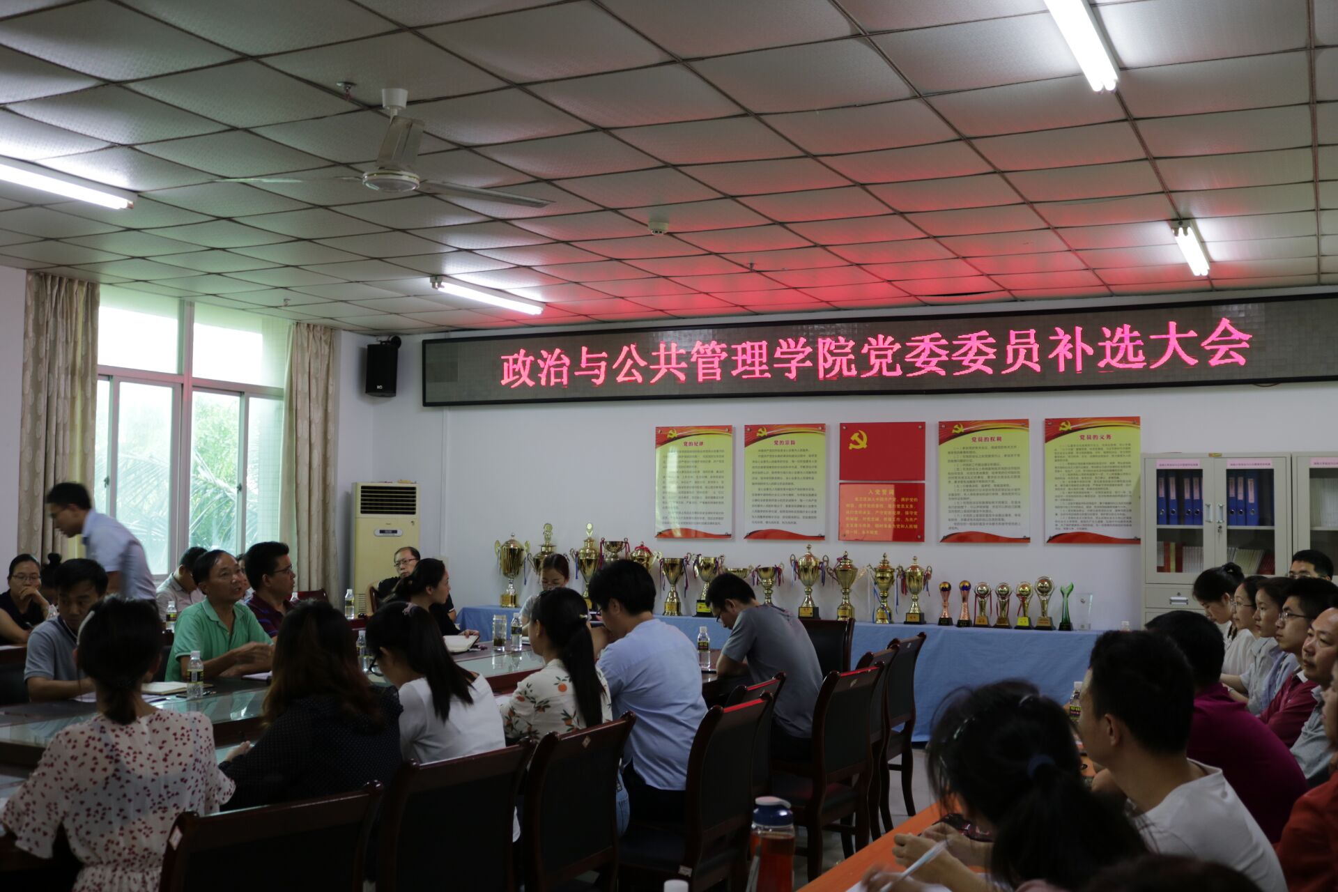4月9日下午,政治与公共管理公司在社科楼A216召开党委委员补选大会。会议由王默忠书记主持,院全体正式党员参与会议。