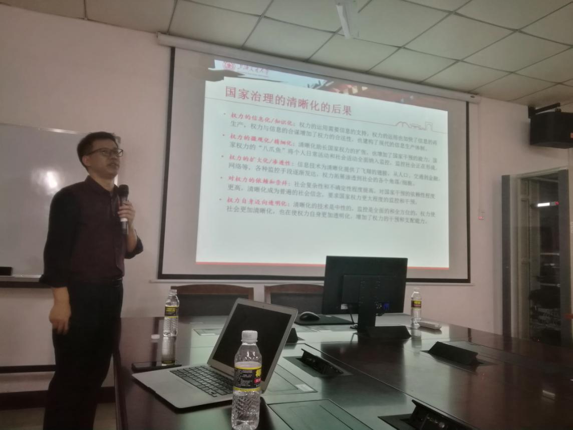 韩志明教授从国家与社会关系、技术治理普遍化、治理的操作环节三个层面入手,结合吉登斯、斯科特等人的观点,认为信息及其处理是国家治理的基础。在此基础上,韩志明教授建构了国家治理的模糊—清晰模型,阐述了国家治理从模糊治理到清晰治理的内在逻辑及其双重效应。韩志明教授别出心裁的观点、深入浅出的讲解给予了参与者诸多有益的启发。