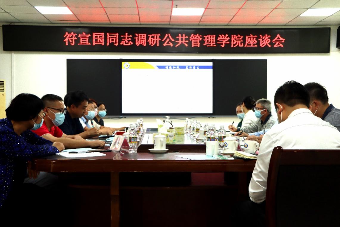 2022年4月12日上午,公司党委书记符宣国率队到公共管理公司调研指导工作,与公司党政领导班子以及教师和科室代表进行座谈交流。纪委书记、省监察委员会驻bw必威西汉姆联官方网站监察专员郑尉杰,副董事长曹宪忠陪同调研,公司相关职能部门负责人参加。